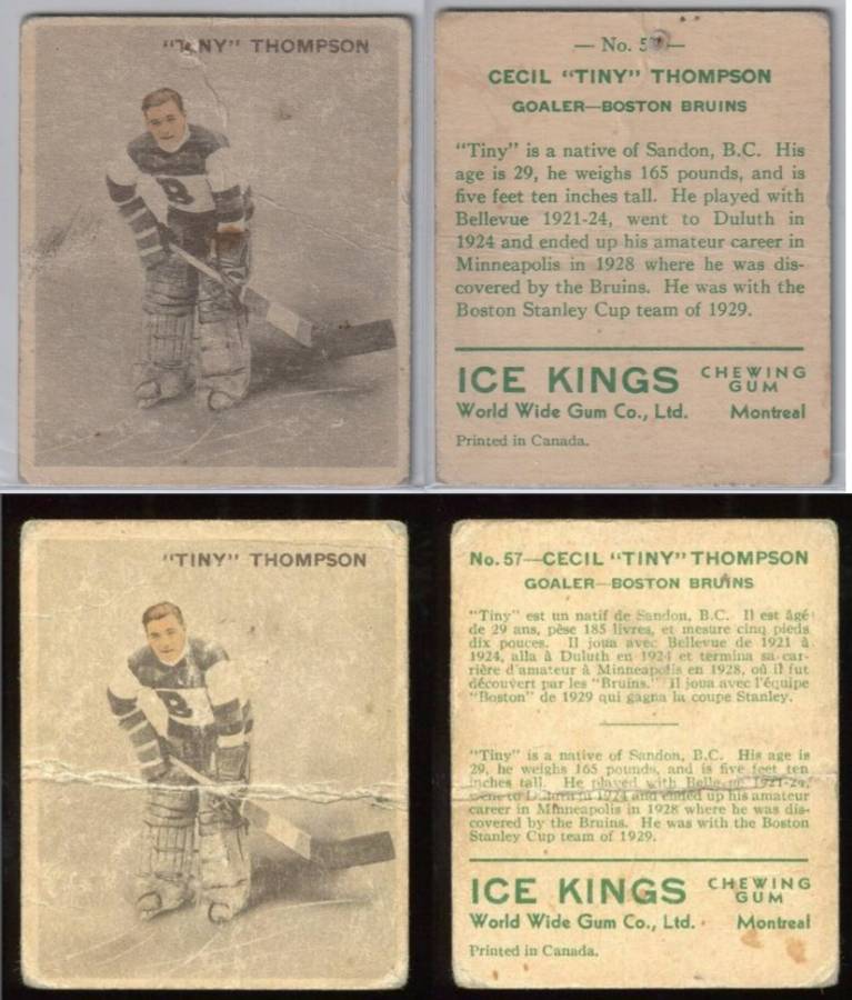 1933-34 V357 World Wide Gum Ice Kings (2) Tiny Thompson